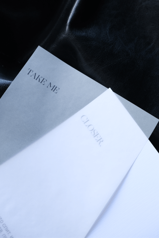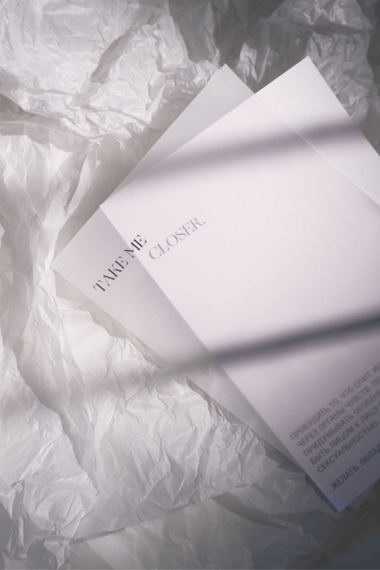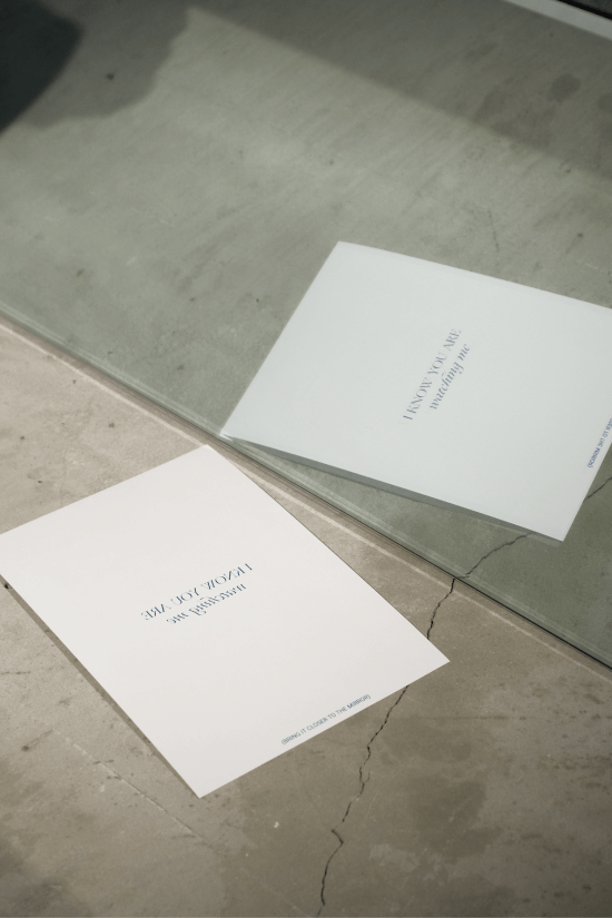 Materials — translucent covers, rough cardboard, mirrored inserts. Each element invites pause, reflection, and intimacy.