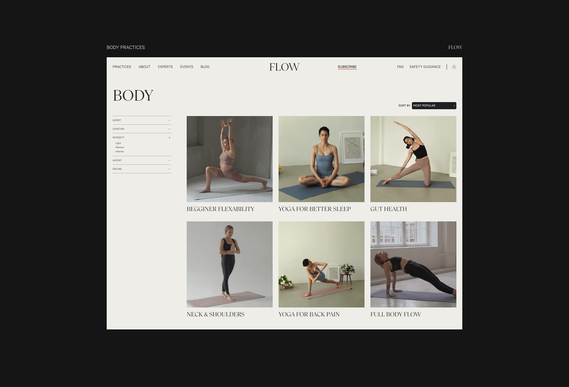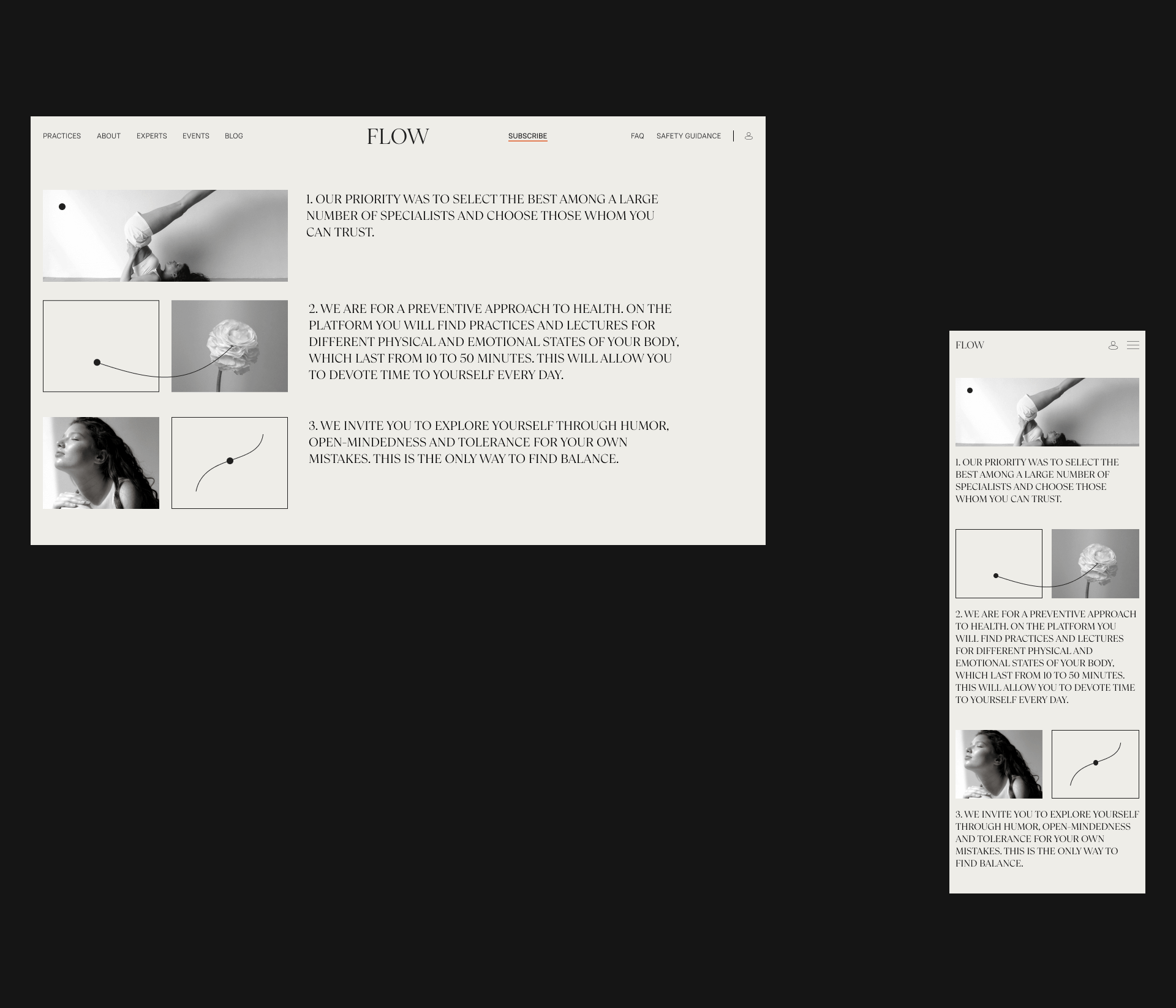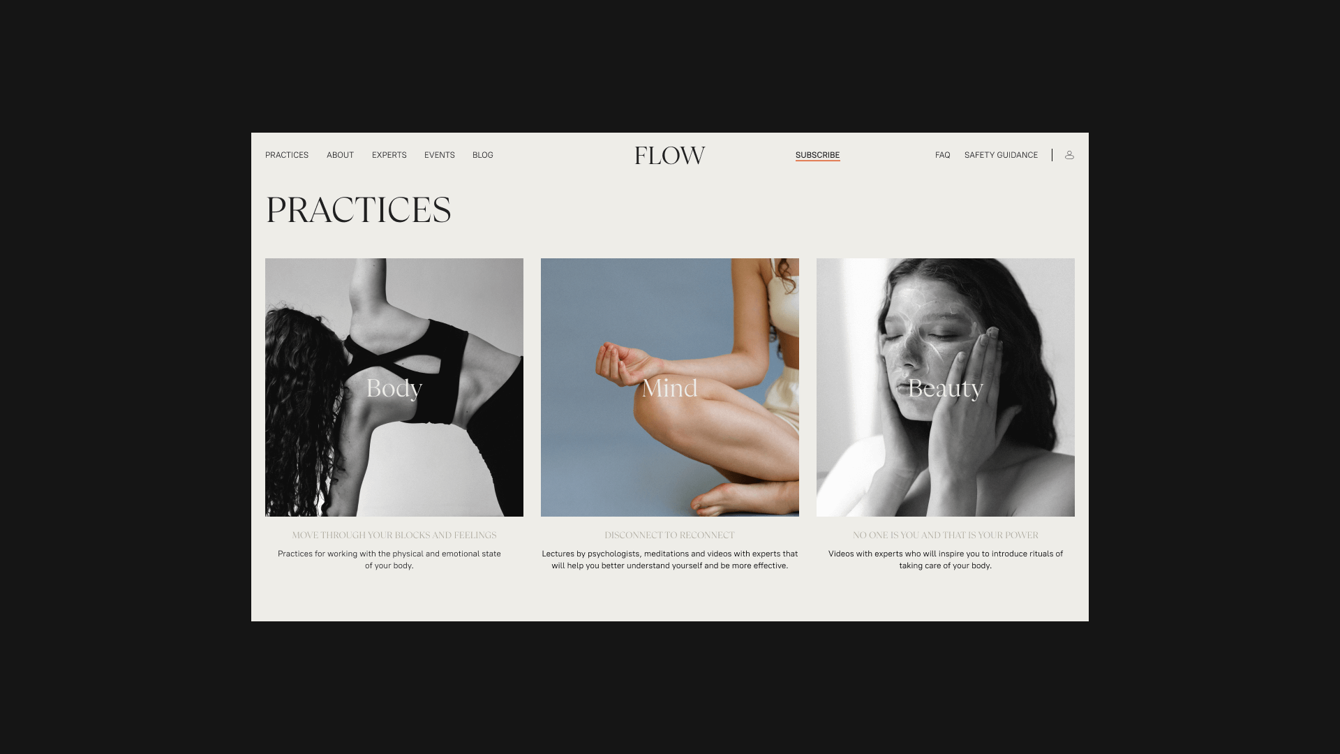 Website for the wellness platform FLOW