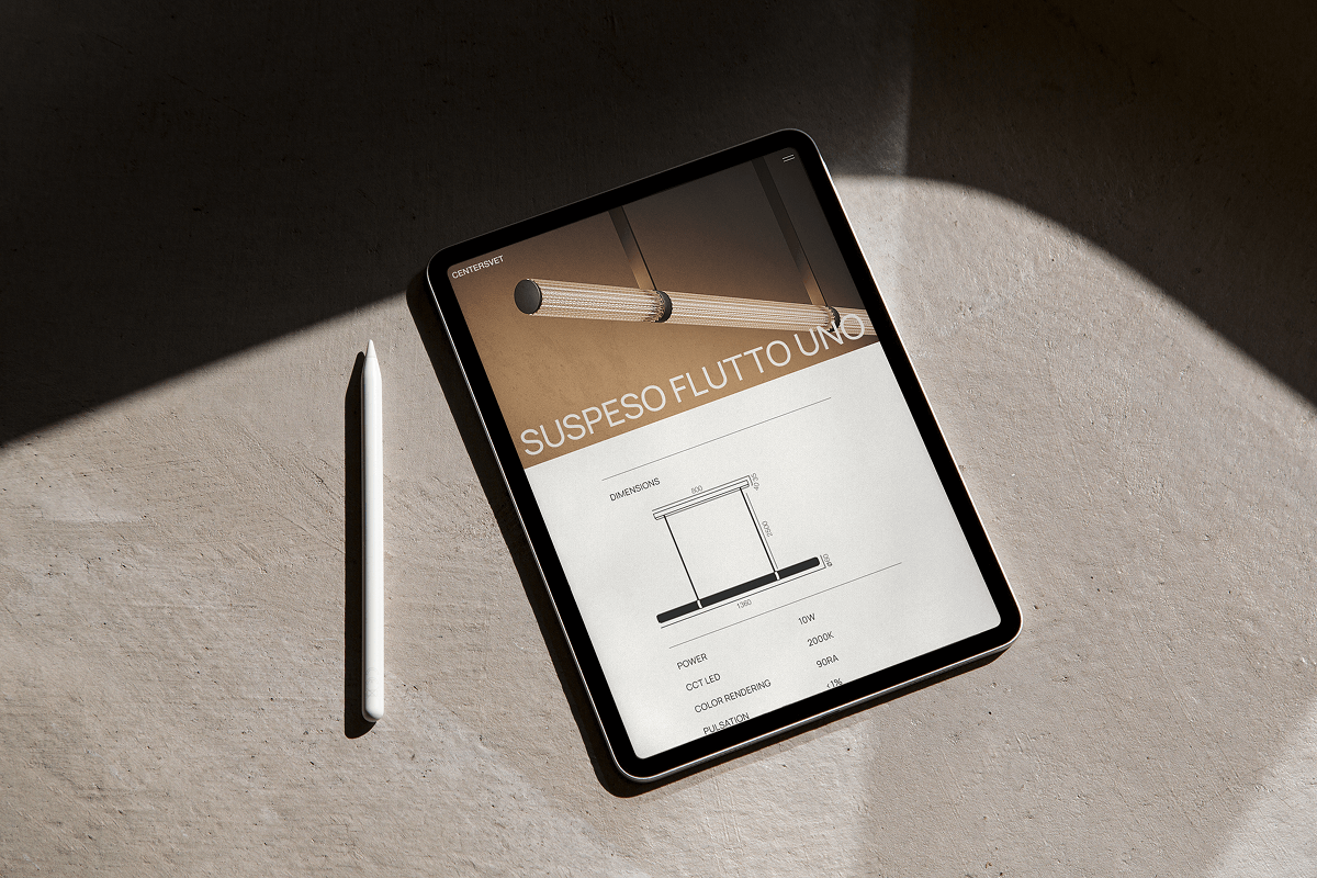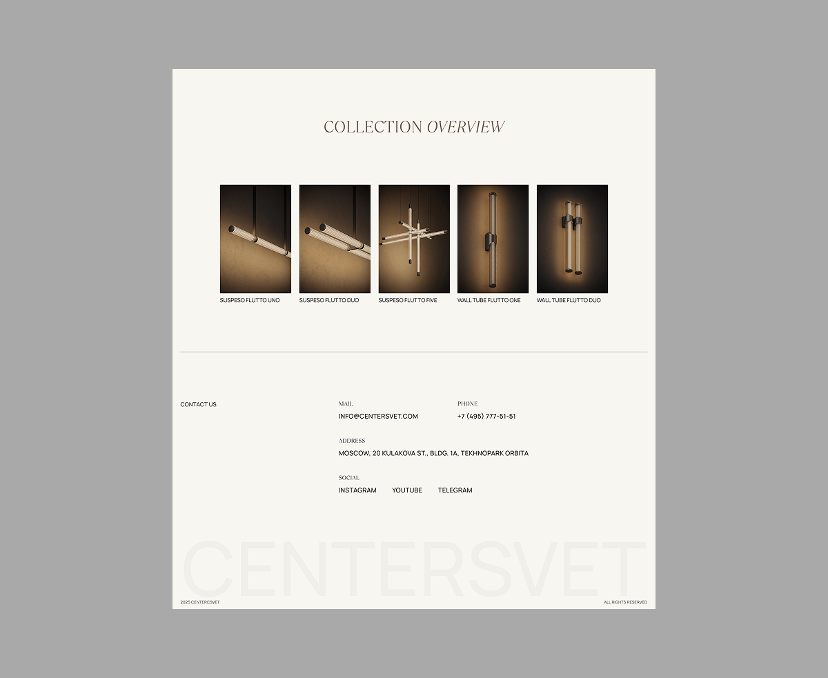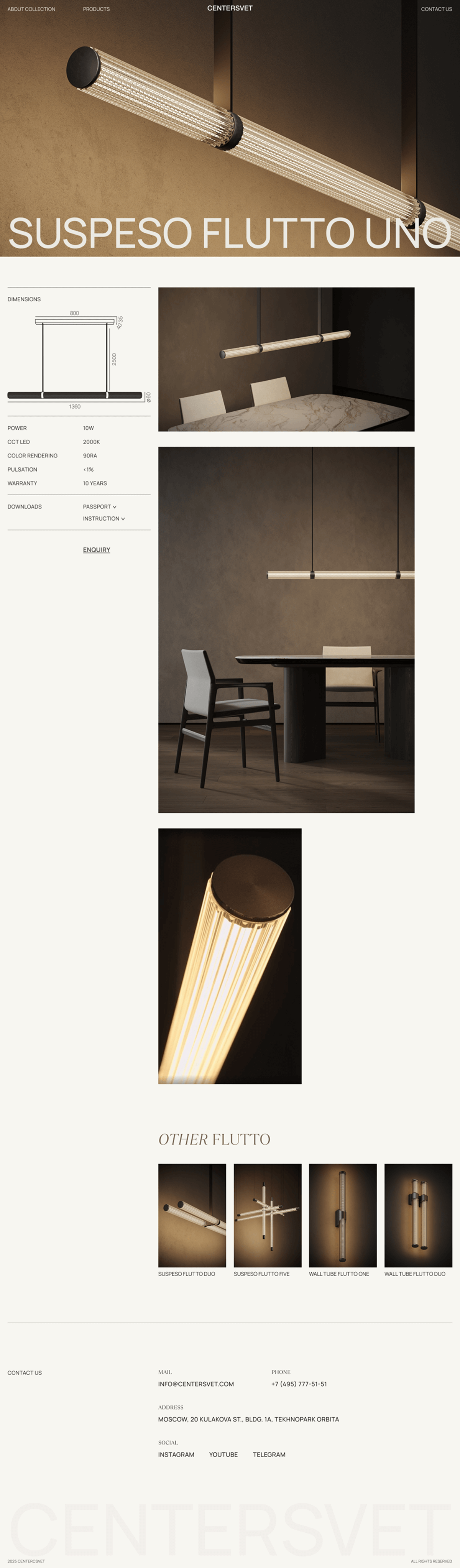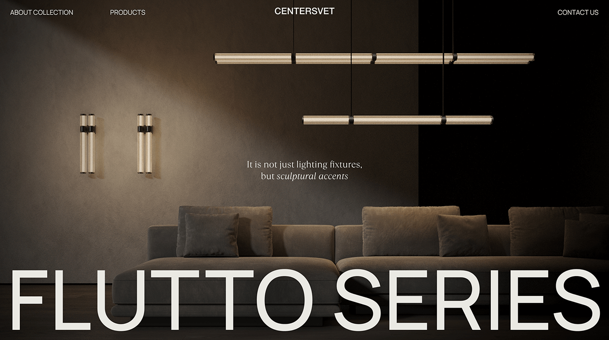 Website showcasing the FLUTTO lighting collection by CENTRSVET