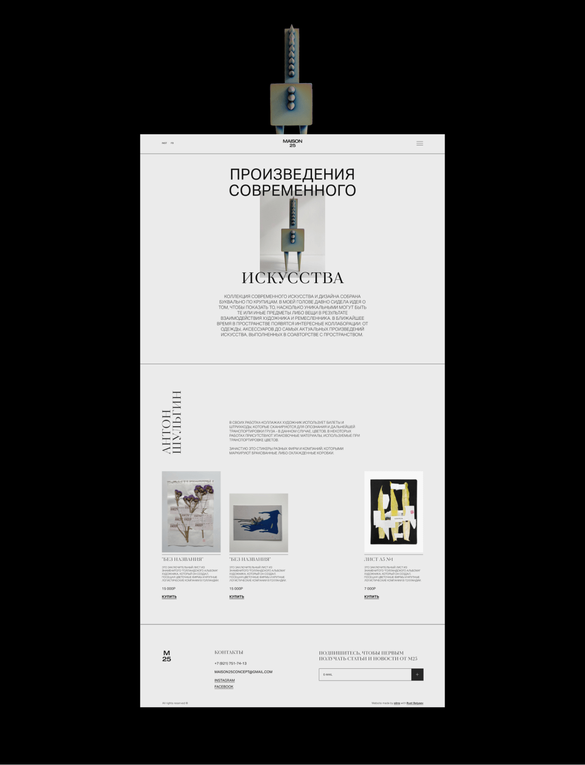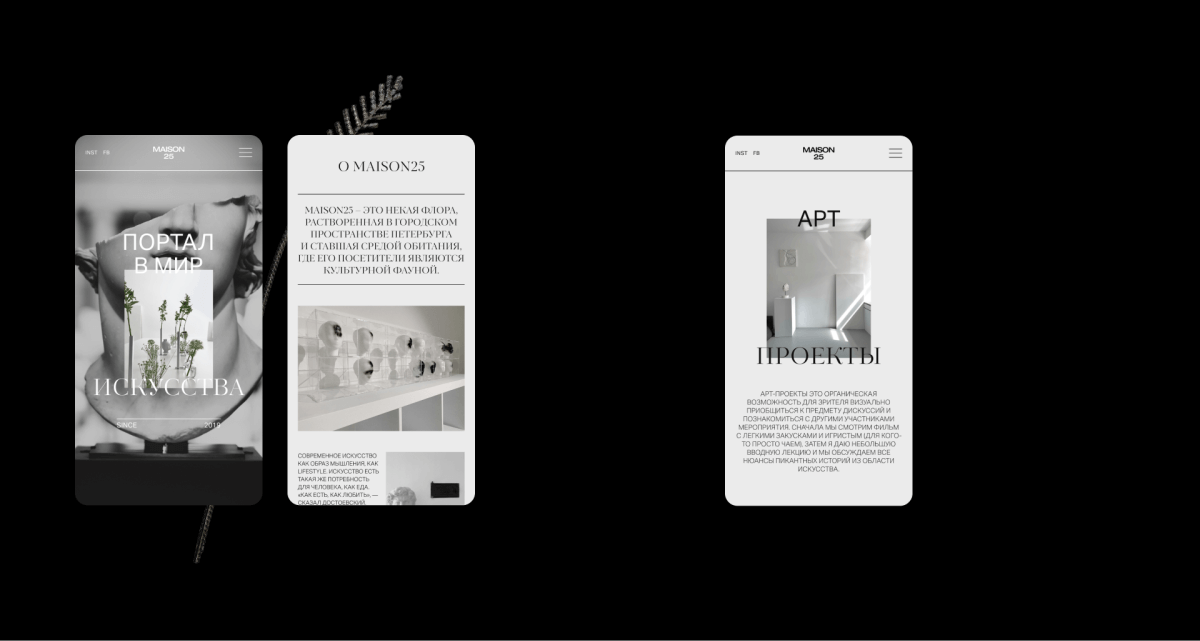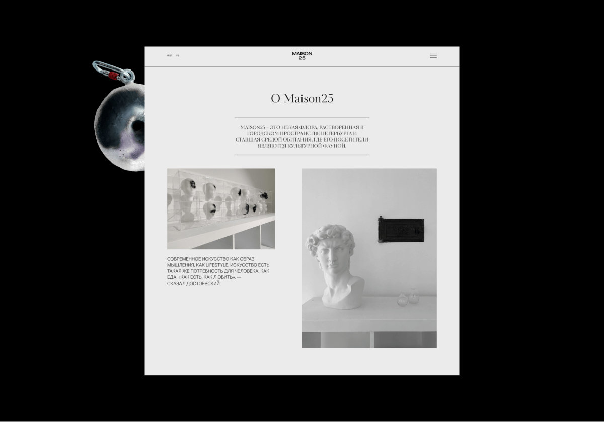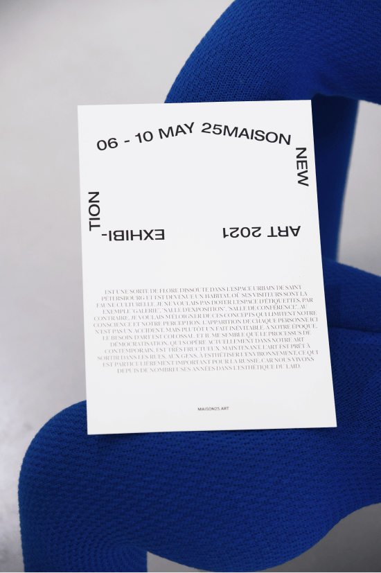 Located in the heart of Saint Petersburg at 25 Galernaya Street, MAISON25 is a multifunctional space. It serves as a gallery with regular re-exhibitions, a venue for private lectures and contemporary art consultations, as well as a space for art exhibitions, events, and private parties.