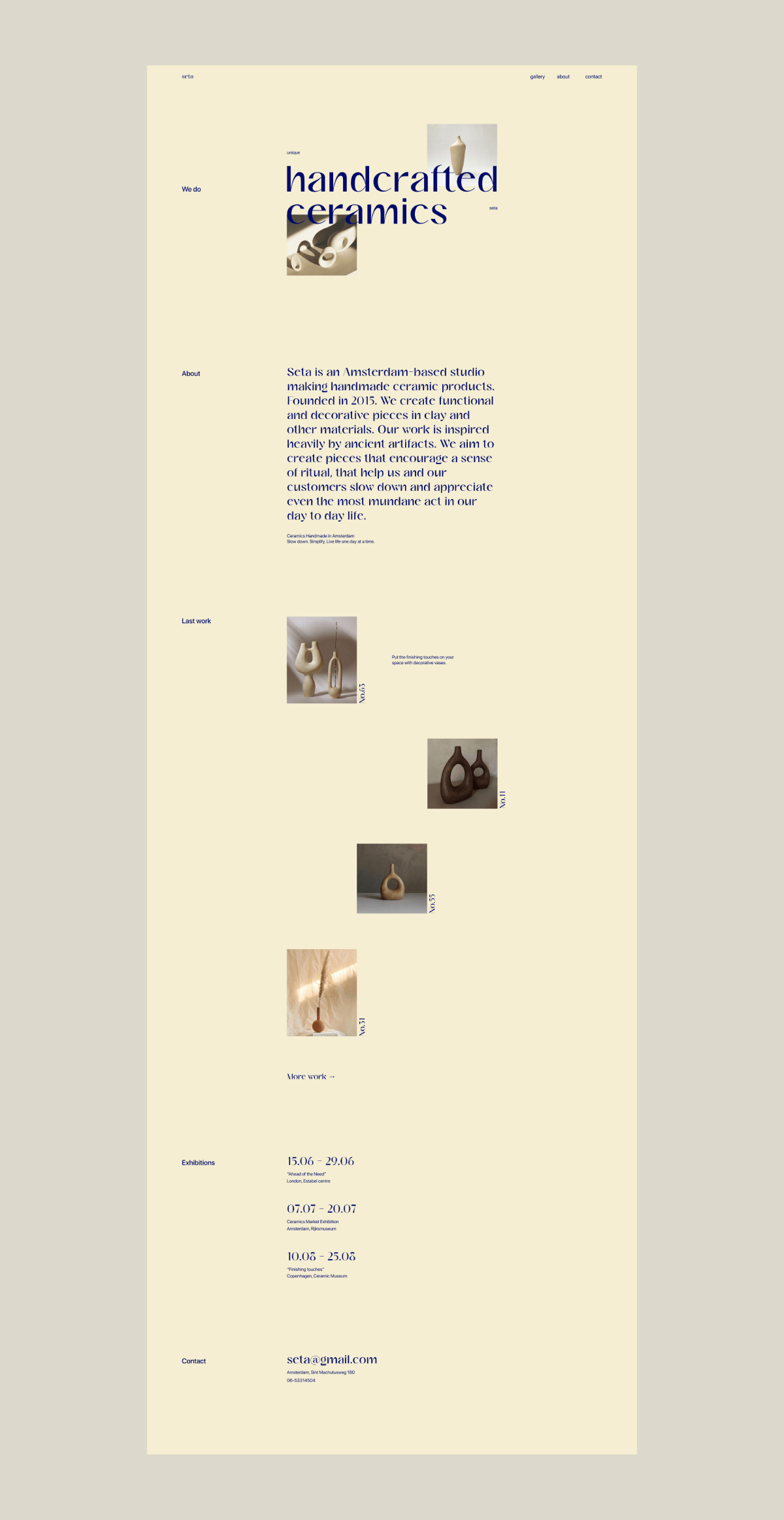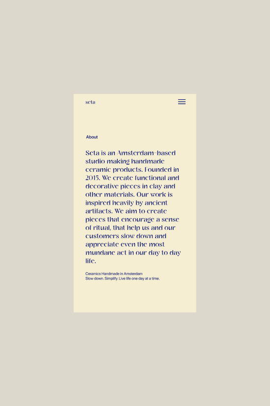 Identity and website for Seta, an Amsterdam studio engaged in the manufacture of handmade ceramic products