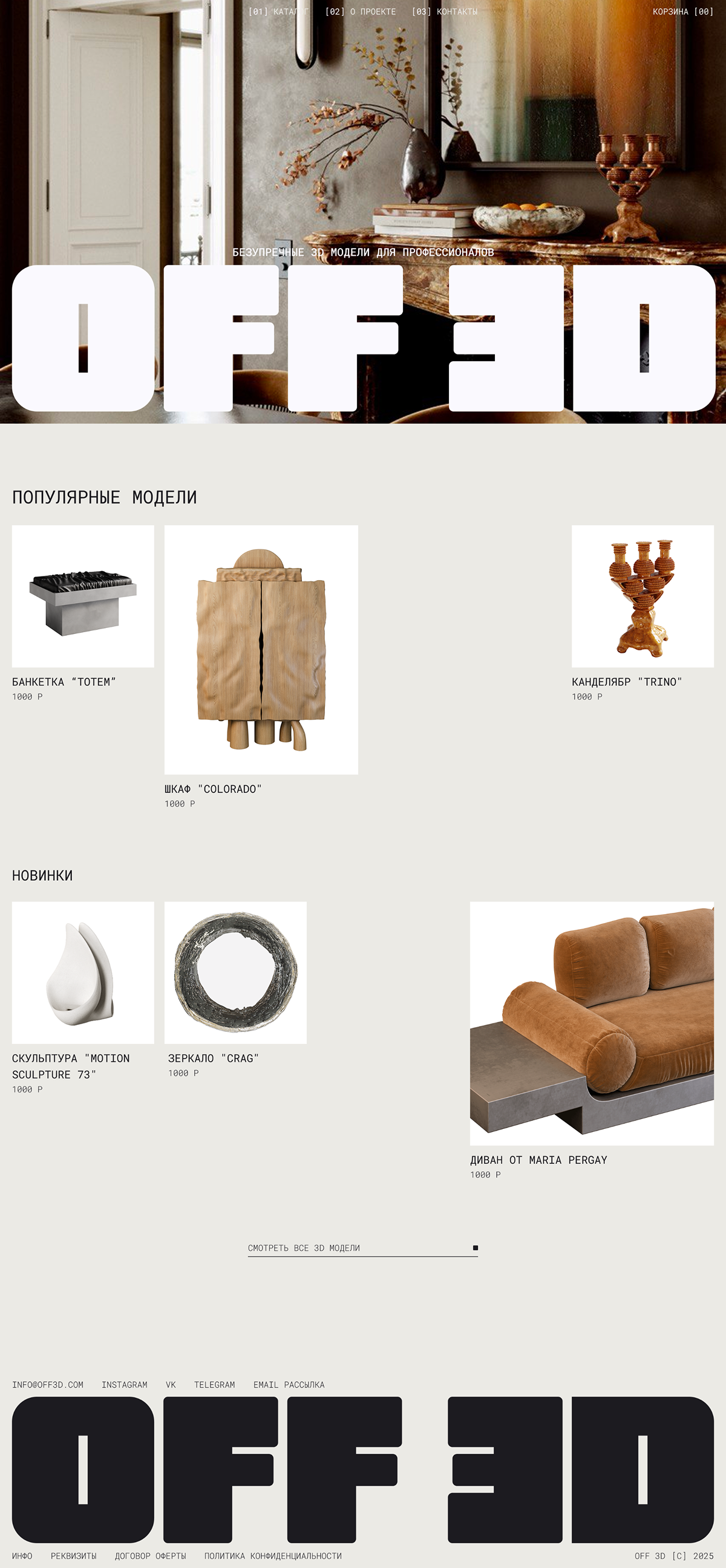 Айдентика и интернет-магазин для OFF 3D — проекта, занимающегося разработкой и продажей 3D моделей